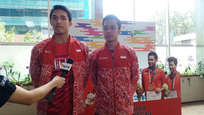 "Karena kami sama dan kami sama-sama membela Indonesia, jadi support lah," ucap peraih medali emas tunggal putra bulu tangkis Asian Games 2018 ini.