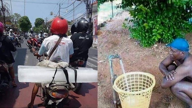Apa yang dilakukan bapak-bapak yang tertangkap kamera itu sungguh bikin geregetan netizen. Bapak tersebut dinilai sia-sia dalam membawa es batu, karena cuacanya terlihat sangat panas. Sampai di tujuan, es batu tersebut kemungkinan akan mencair. Aksi bapak membawa es batu ini viral dan banyak yang mengomentari.