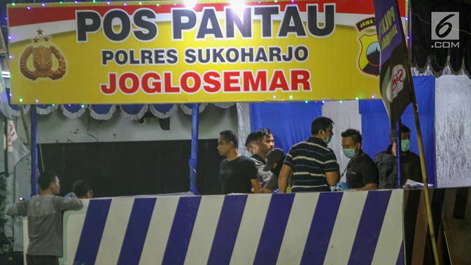 Garis polisi melintang di lokasi ledakan bom di Pos Polisi Pantau, Bundaran Kartasura, Sukoharjo, Jawa Tengah, Selasa (4/6/2019). Bom bunuh diri terjadi pada Senin pukul 22.20 WIB yang mengakibatkan pelaku aksi teror kritis dan tujuh polisi selamat. (Liputan6.com/Fajar Abrori)