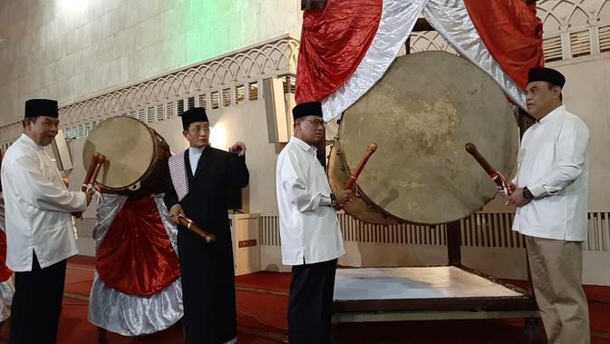 Setelah menyampaikan sambutannya, Muhammadiyah serta Imam Besar Istiqlal Nasarudin Umar, serta beberapa orang lainnya serempak menabuh bedug di dalam ruang salat Masjid Istiqlal.