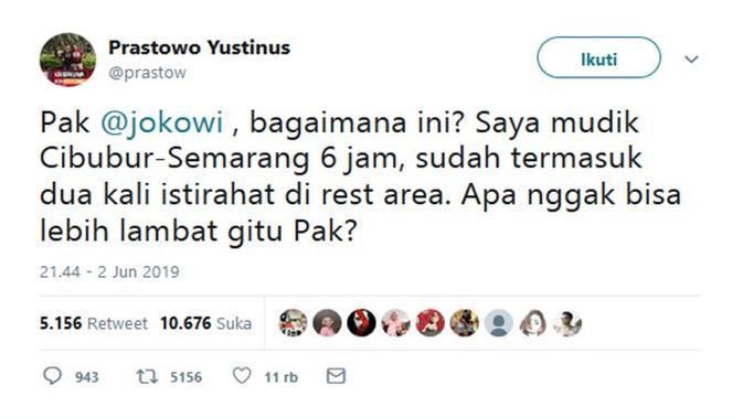 Netizen yang melihat keluhan tersebut pun membagikan respons positif. Banyak yang terhibur dan juga ikut menuliskan pengalaman mudik mereka yang terbebas dari kemacetan. Para netizen ini pun merasa bahwa "tradisi nasional" saat lebaran mulai hilang karena arus mudik tidak mengalami kemacetan. Berikut adalah beberapa twit netizen.