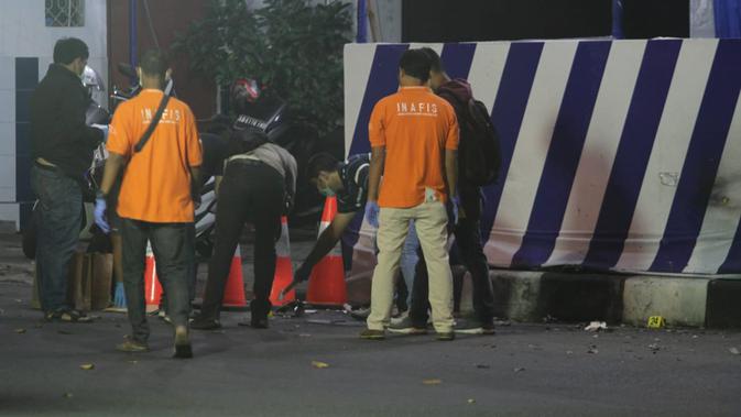 Tak hanya petugas Gegana, sejumlah petugas dari Inafis juga terlihat mendekati pos pengamanan. Mereka mengecek dan mengambil sejumlah barang bukti lokasi kejadian. Barang bukti tersebut dibawa dengan menggunakan kantong dan kardus.