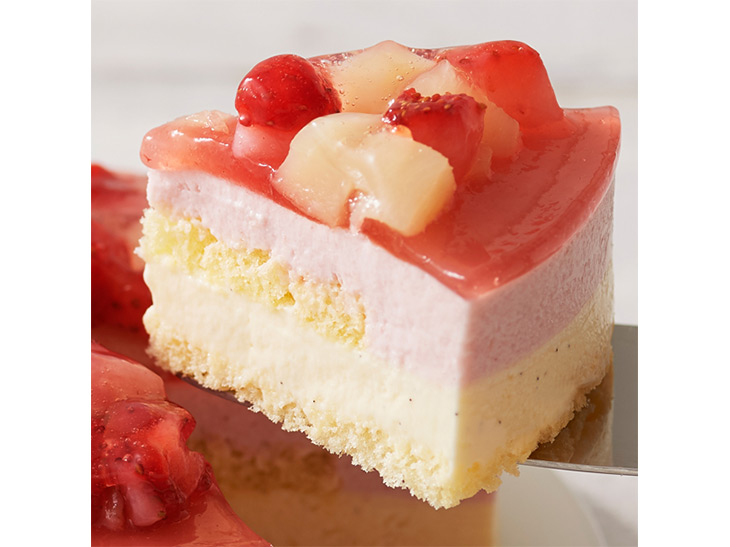 果実の酸味とマスカルポーネのまろやかさがバランス良く、ケーキの下のバニラムースで一層、上品な風味に仕上げています。
