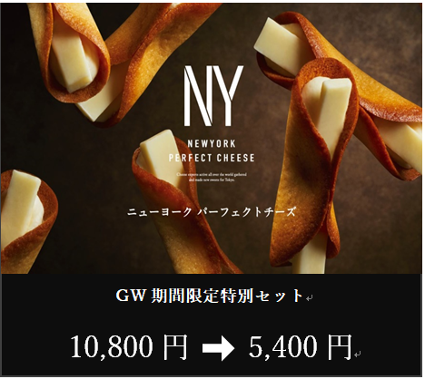人気商品「ニューヨークパーフェクトチーズケーキ」をはじめ、「メープルチーズ」「チーズエスカルゴ」「ローストキャラメルマーケット」「キャラメルブラウニー」「キャラメルアップル」「東京かみなり舎」など人気のお菓子を総額10,800円以上詰め合わせ、『GW期間限定特別BOX』として税込5,400円で販売。全国送料無料で配送致します。