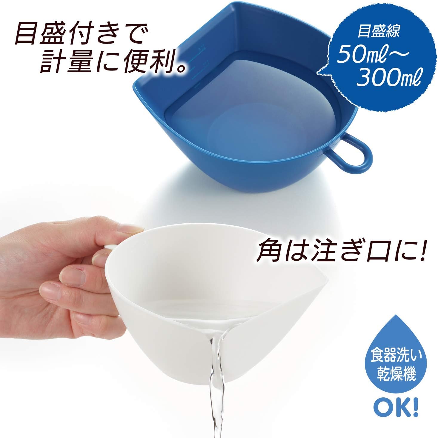 さらに、ボウルの内側には50ml〜300mlの目盛り線がついているので、計量カップとして使うことも可能。角の部分が注ぎ口になります。