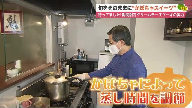 旬のかぼちゃを存分に味わってほしいと、おいしい時期を見計らってチーズケーキづくりに取り掛かる。