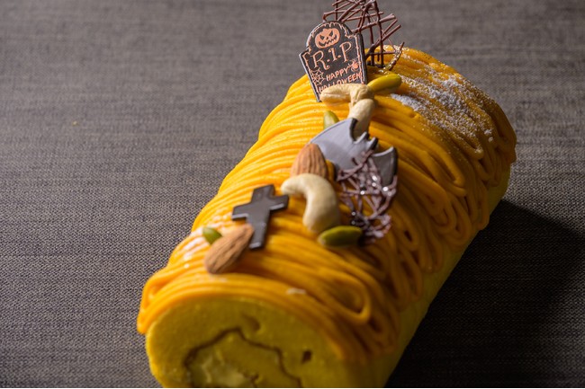 ほくほくのかぼちゃのスポンジでかぼちゃの生クリームを巻き、さらにかぼちゃのクリームをモンブラン絞りでデコレーションしたカボチャづくしのスイーツ。口に入れた瞬間から、かぼちゃのとろけるような甘い味わいをご堪能いただけます。