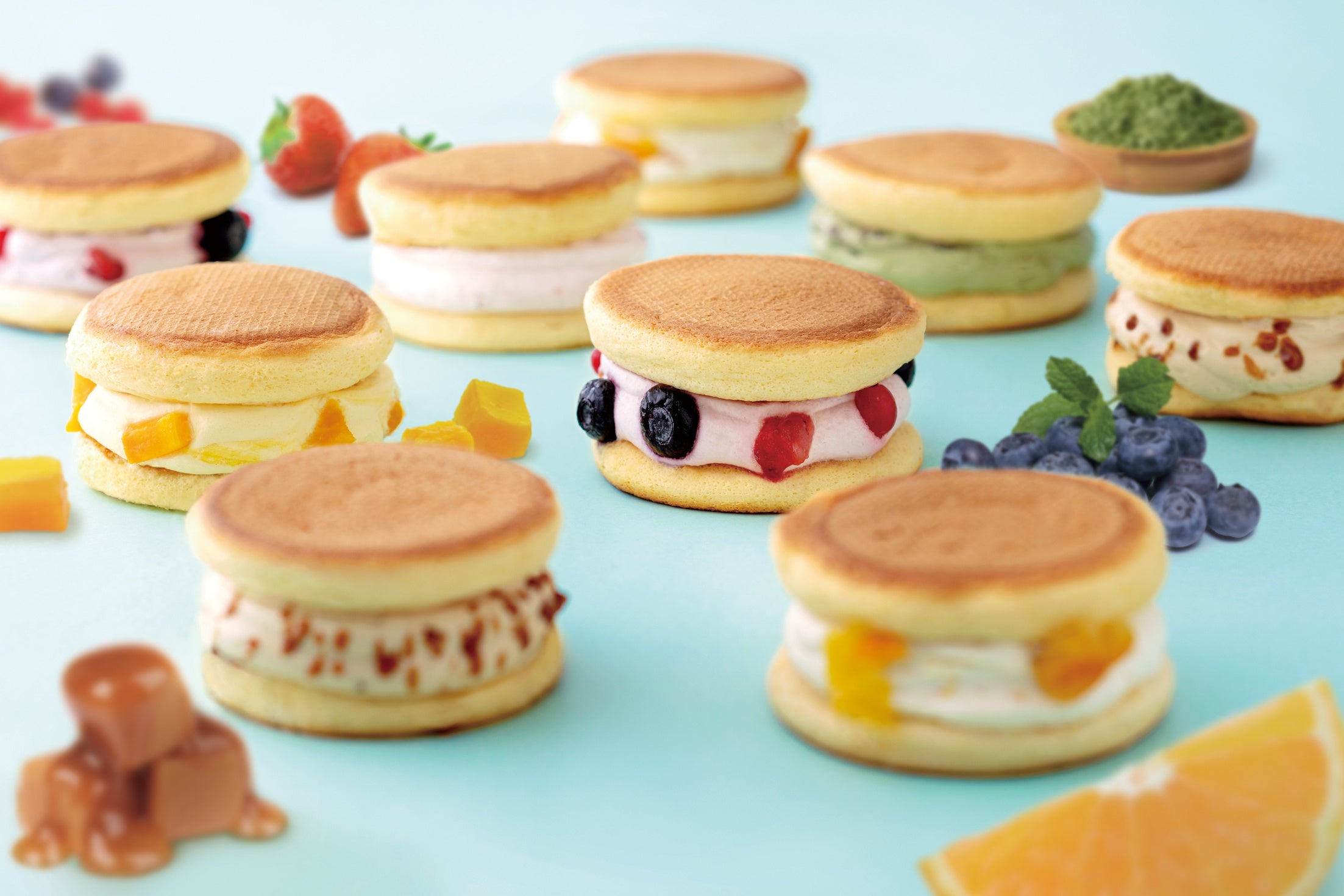 同店舗にて、野口シェフと一緒に開発した、手軽な大きさで食べ歩きにもおすすめの「パンドラ」も販売いたします。ふわふわの「パンケーキ」の生地で、フルーツたっぷりのクリームをはさんだ「ドラ」焼きスタイルの「パンドラ」はころんとしたかわいいフォルムで、映えること間違いなしの新しいスイーツです。7種(オレンジ、いちご、キャラメル、マンゴー、ミックスベリー、抹茶小豆、生クリーム)を発売予定。